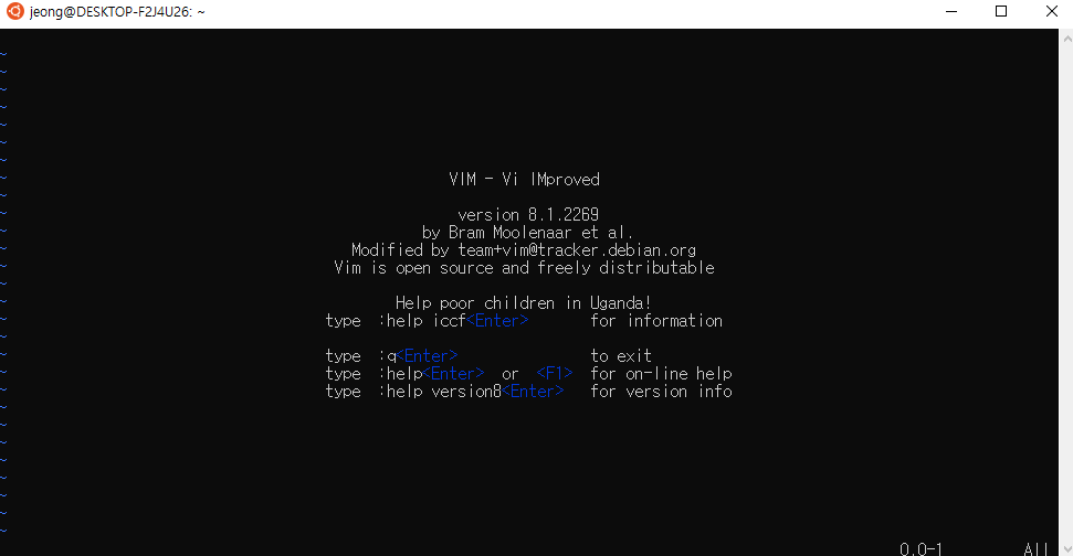 프롬프트에 vi 혹은 vim이라고 타이핑하면 된다.